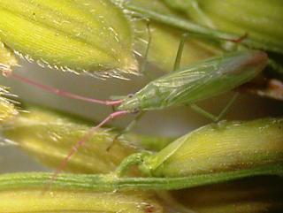 (アカヒゲホソミドリカスミカメは、休耕田や牧草地で生息密度が高まりやすいので注意が必要です。)