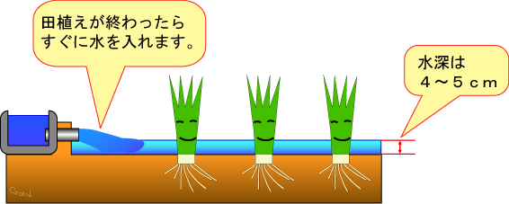 ホーム > 作物別情報 > 水稲 > 図解やまがたの米づくり > 田植え直後の水管理