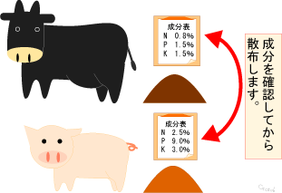 堆きゅう肥の成分は、家畜の種類、製造方法により異なります。