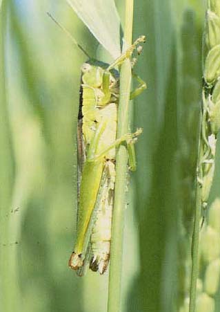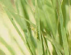 イネカラバエは幼虫が茎の内部に入り、生長点付近で葉や幼穂を加害し、傷穂となって現れます。