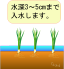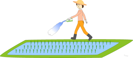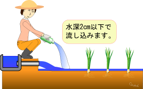 散布は水深3~5cmの状態で行い、散布後3~4日は止水します。
